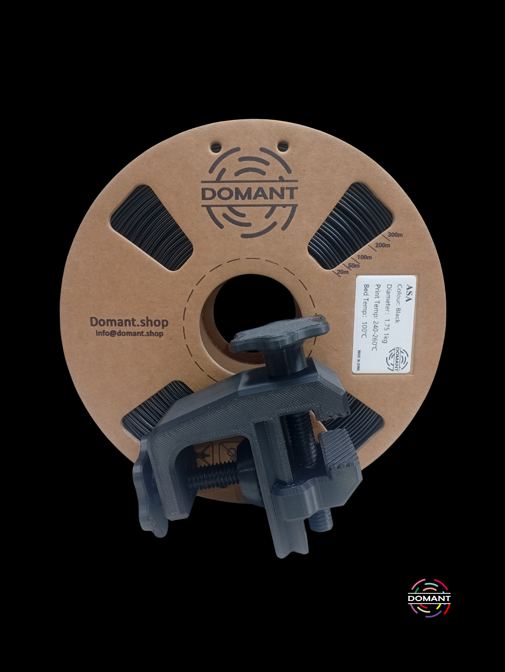 ASA Negro – Domant Negro con acabado ASA premium – un tono profundo y anti-UV que absorbe luz sin degradarse, ofreciendo durabilidad extrema y resistencia al clima. Adhesión sólida, sin deformaciones. Ideal para carcasas técnicas al exterior, piezas automoción, soportes expuestos o drones.