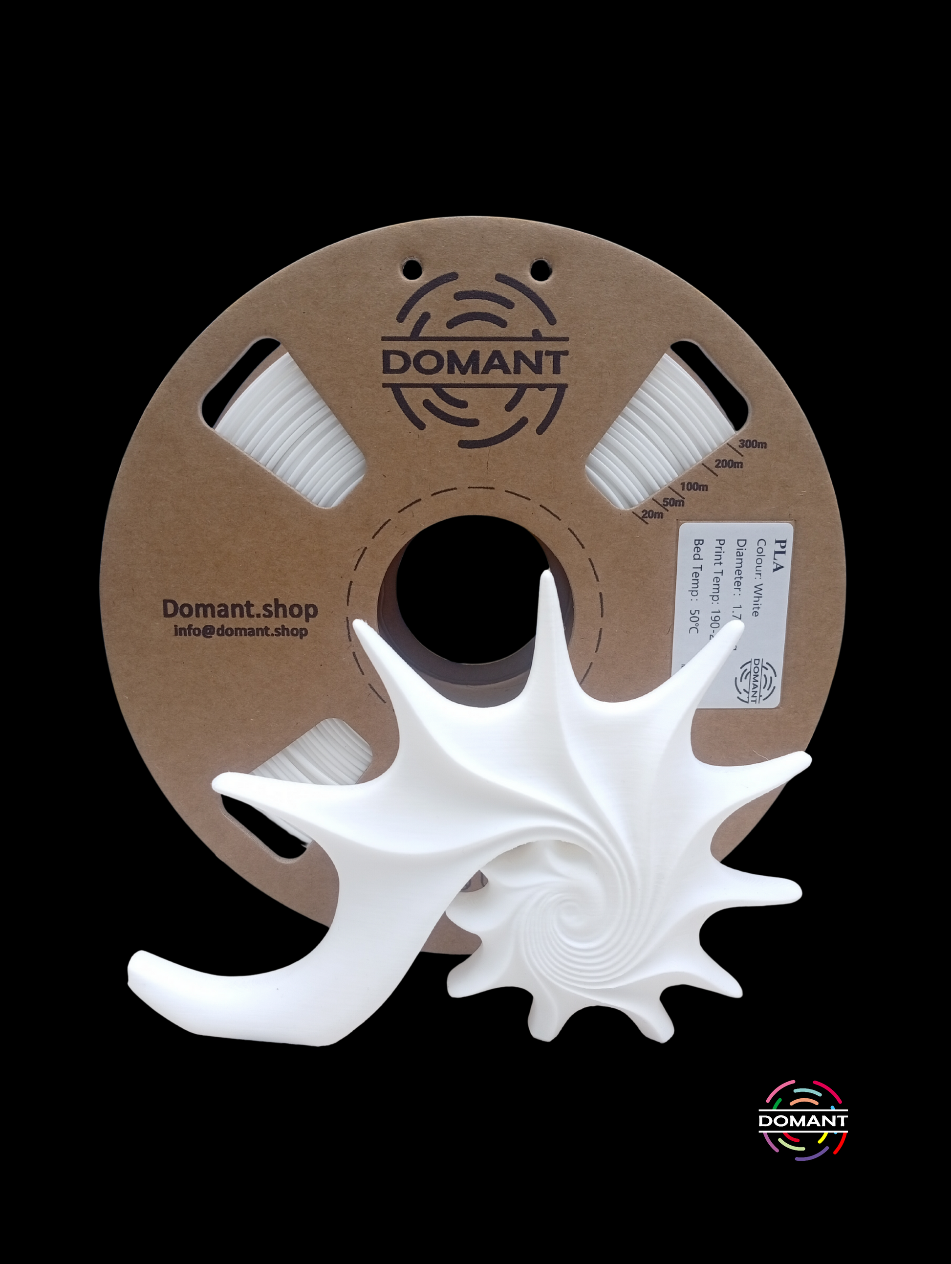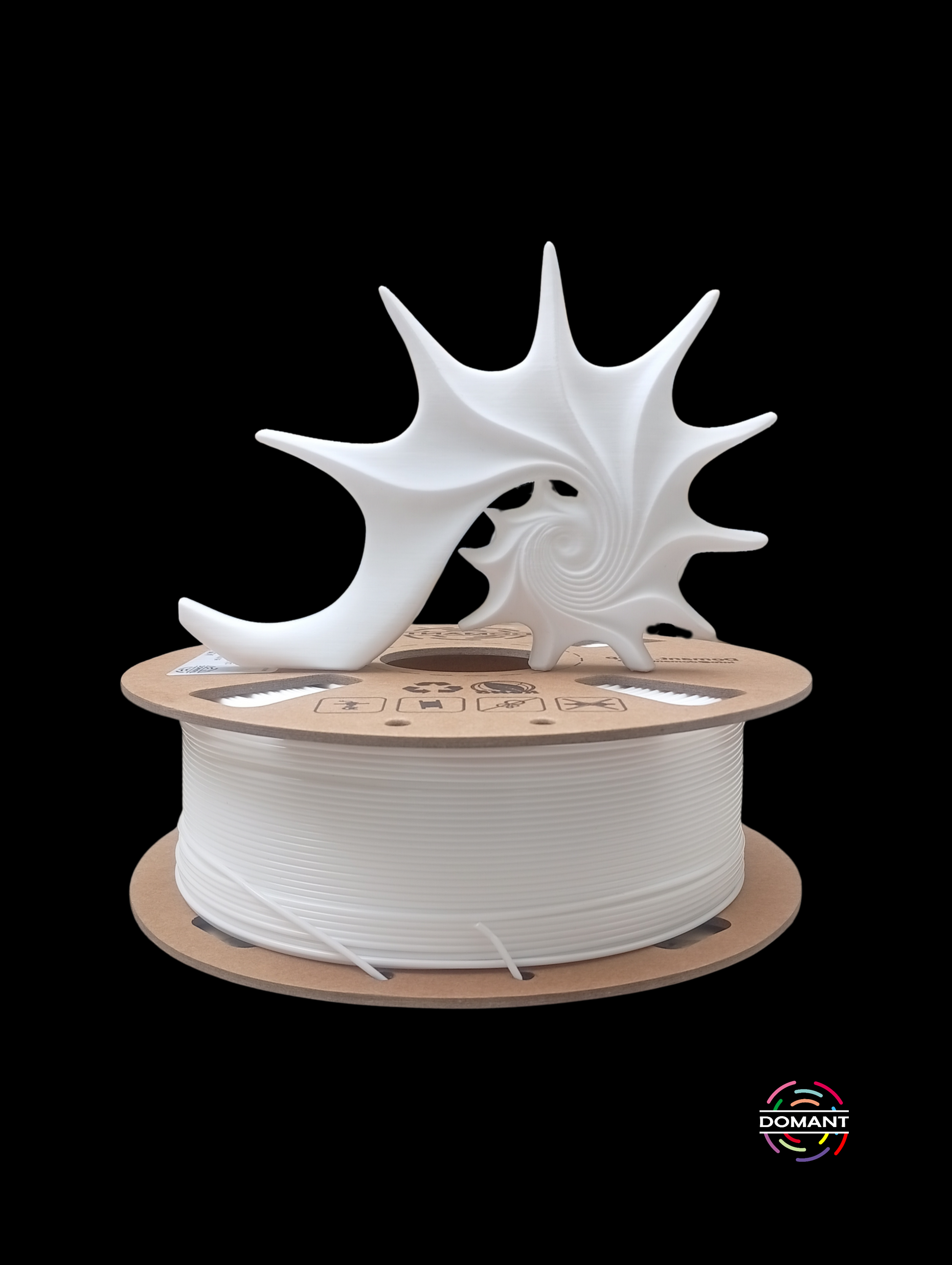 PLA Blanco – Domant Blanco puro con brillo suave – un tono limpio y luminoso que refleja la luz uniformemente, ideal para prototipos visibles o decoración clara.