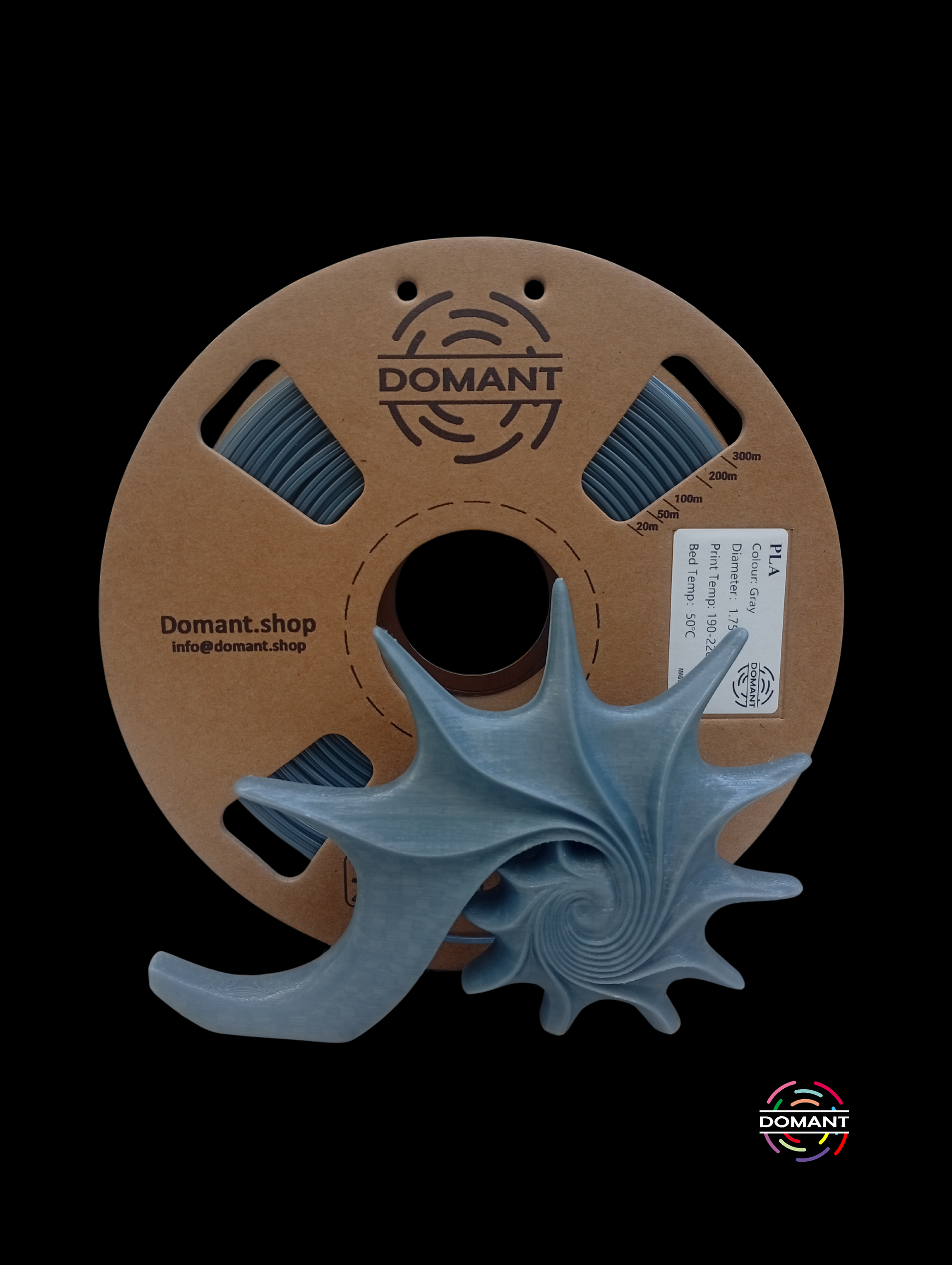 PLA Gris – Domant Gris neutro con equilibrio perfecto – un tono sobrio y profesional que combina con todo, ideal para prototipos funcionales o diseño industrial.