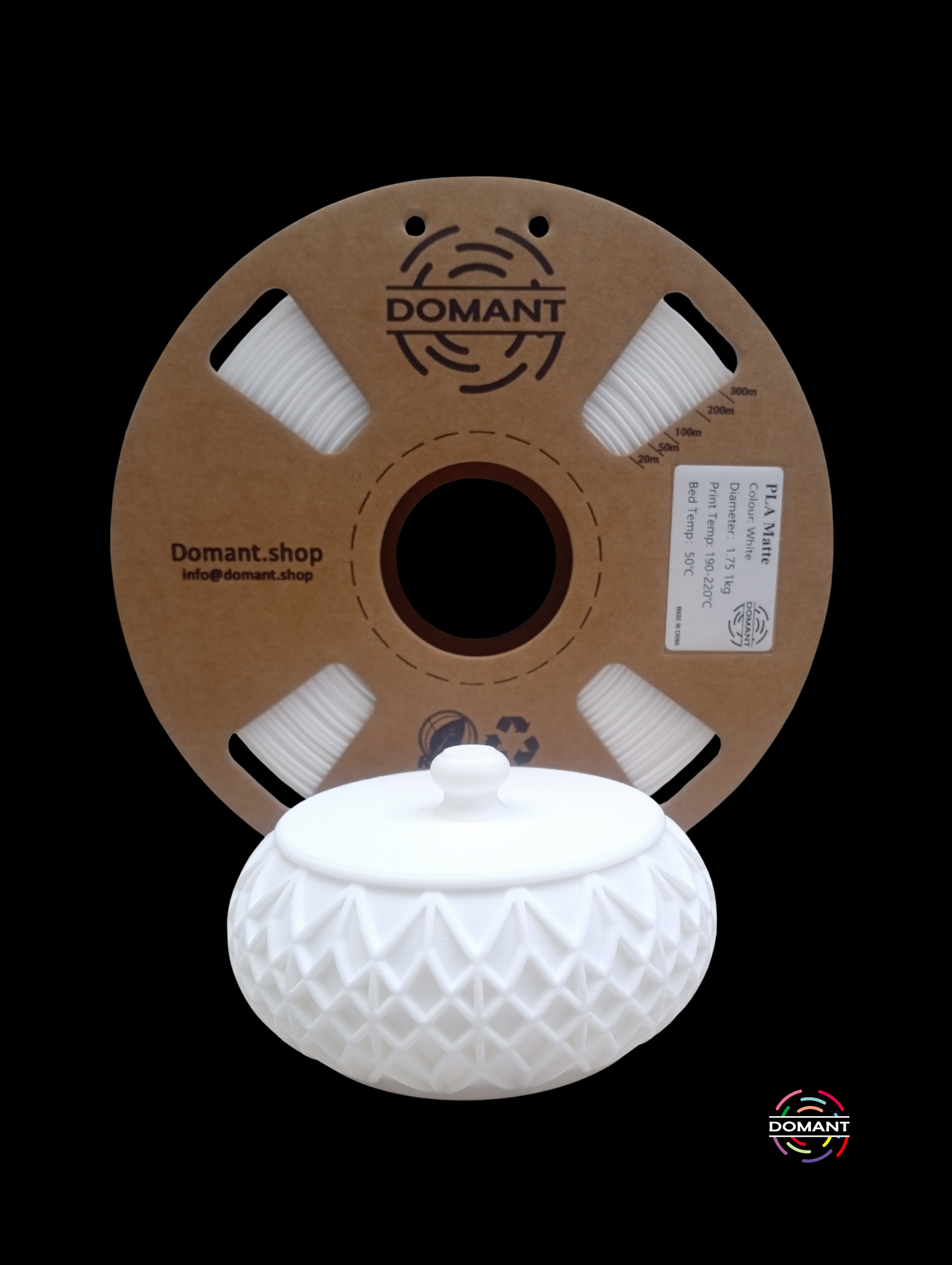 PLA Mate Blanco – Domant Blanco con acabado mate premium – un tono puro y limpio que elimina brillos y ofrece tacto suave, logrando superficies como porcelana. Ideal para decoración minimalista, prototipos visibles o piezas con acabado profesional.