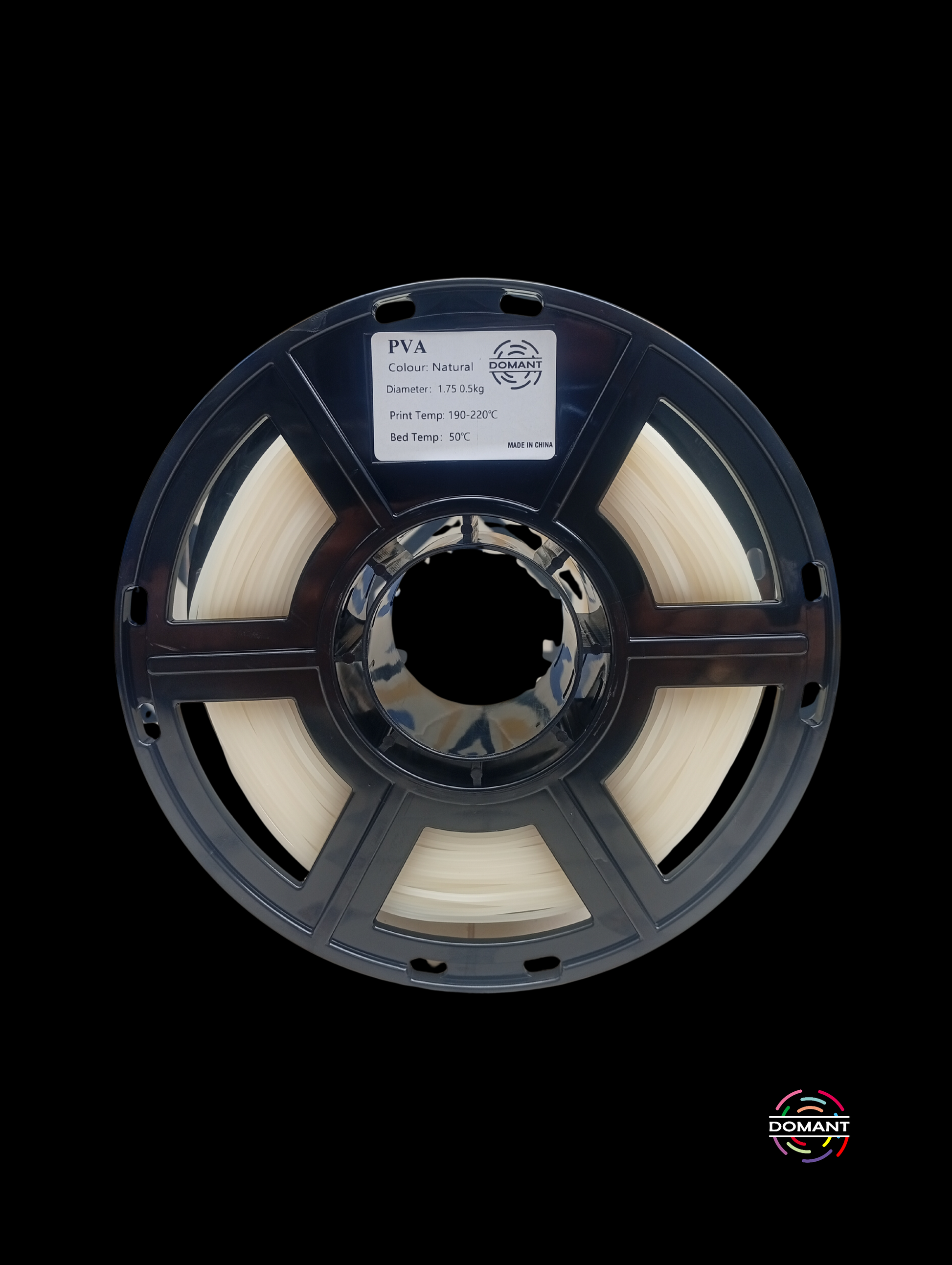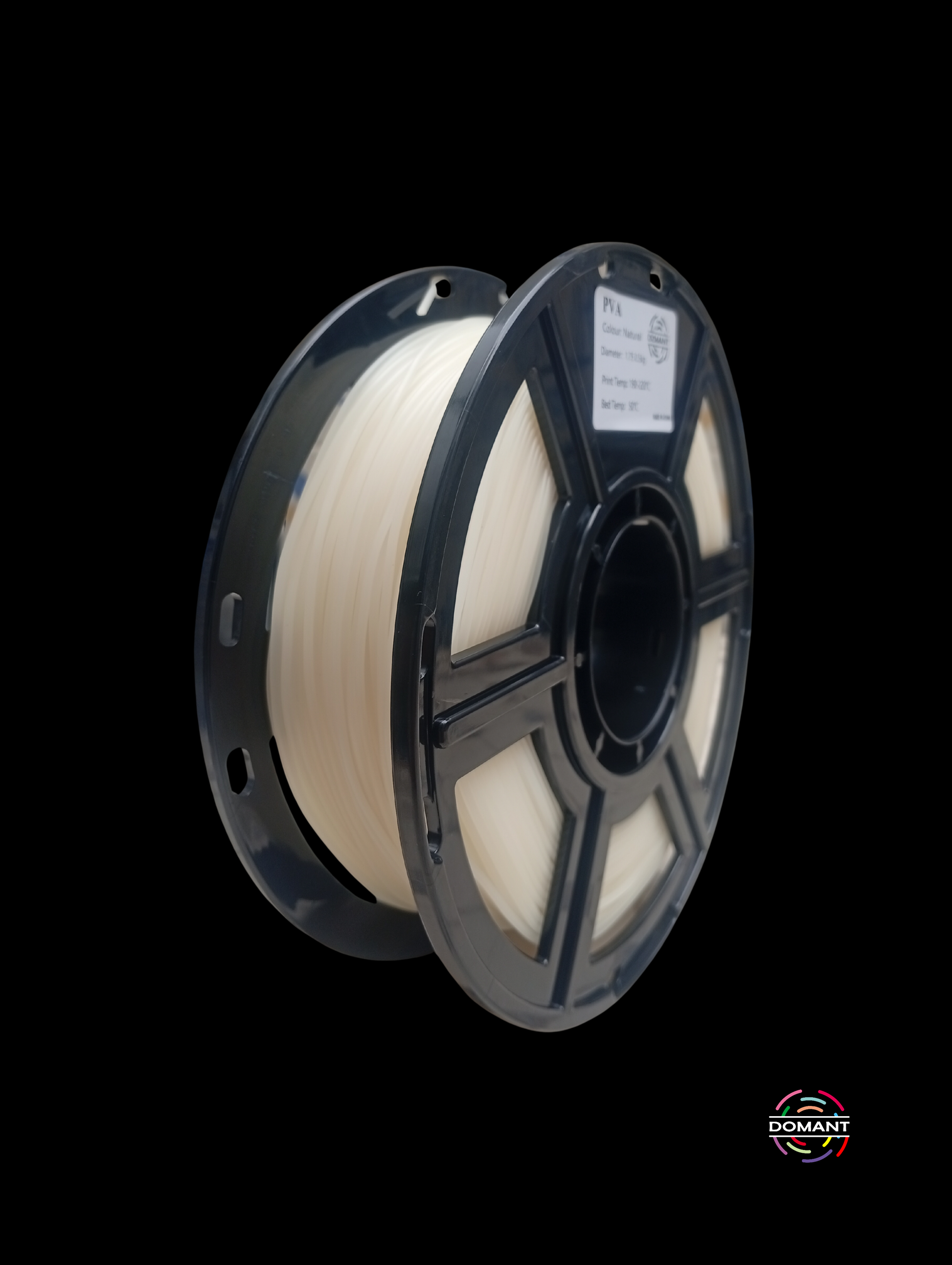 PVA – Domant (500 g) Soporte soluble premium – se disuelve en agua tibia, dejando piezas limpias sin residuos. Adhesión controlada a PLA, PETG y ABS, fluidez perfecta y cero marcas en overhangs. Ideal para geometrías complejas, cavidades internas o estructuras imposibles.